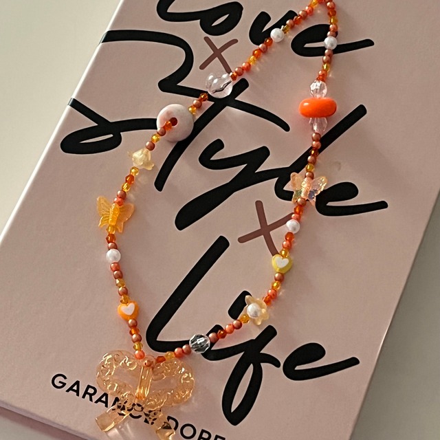 【orange ribbon necklace】ビーズネックレス⭐︎韓国アクセサリー