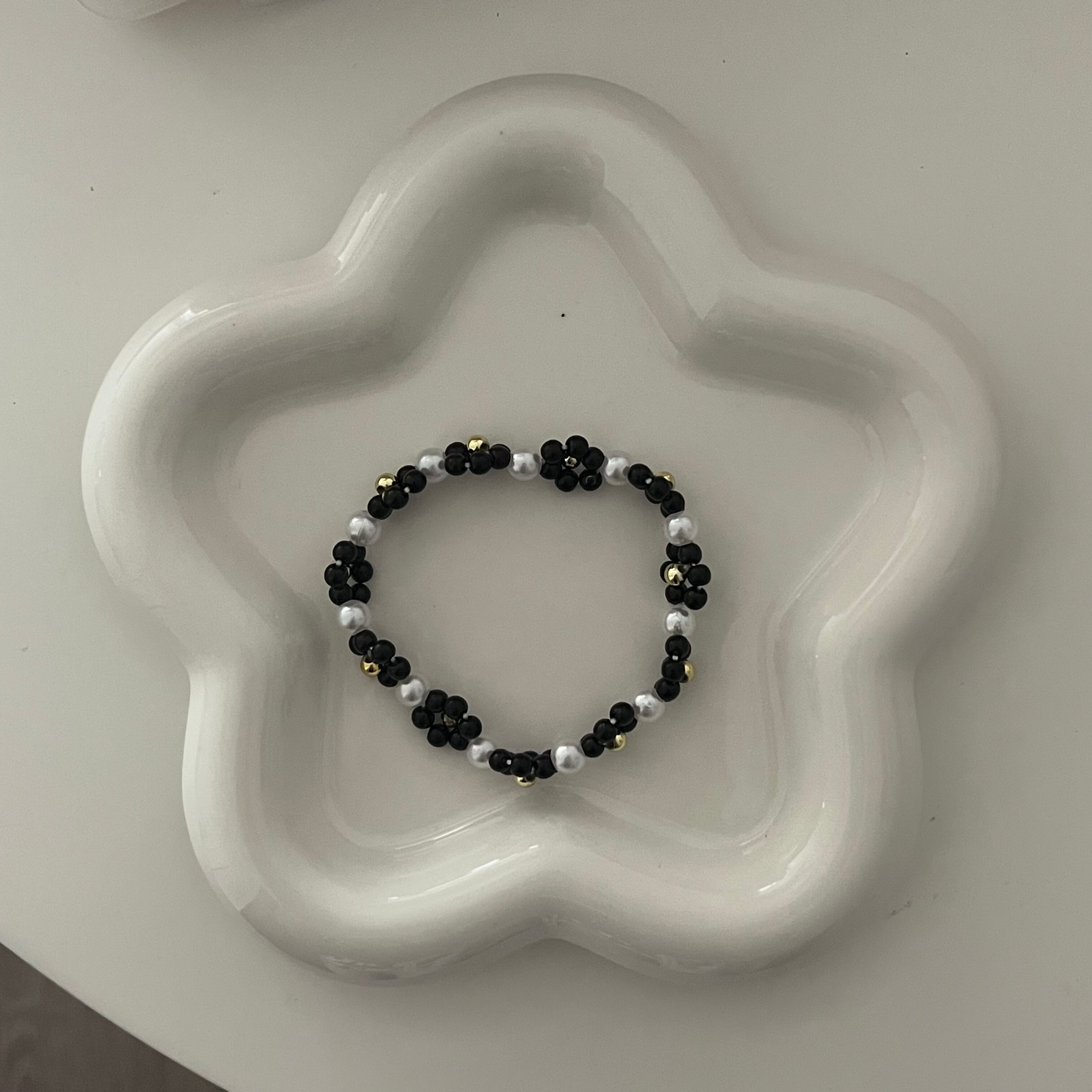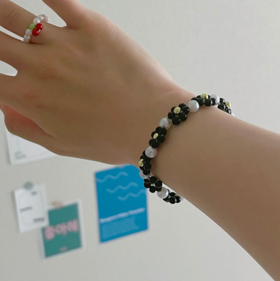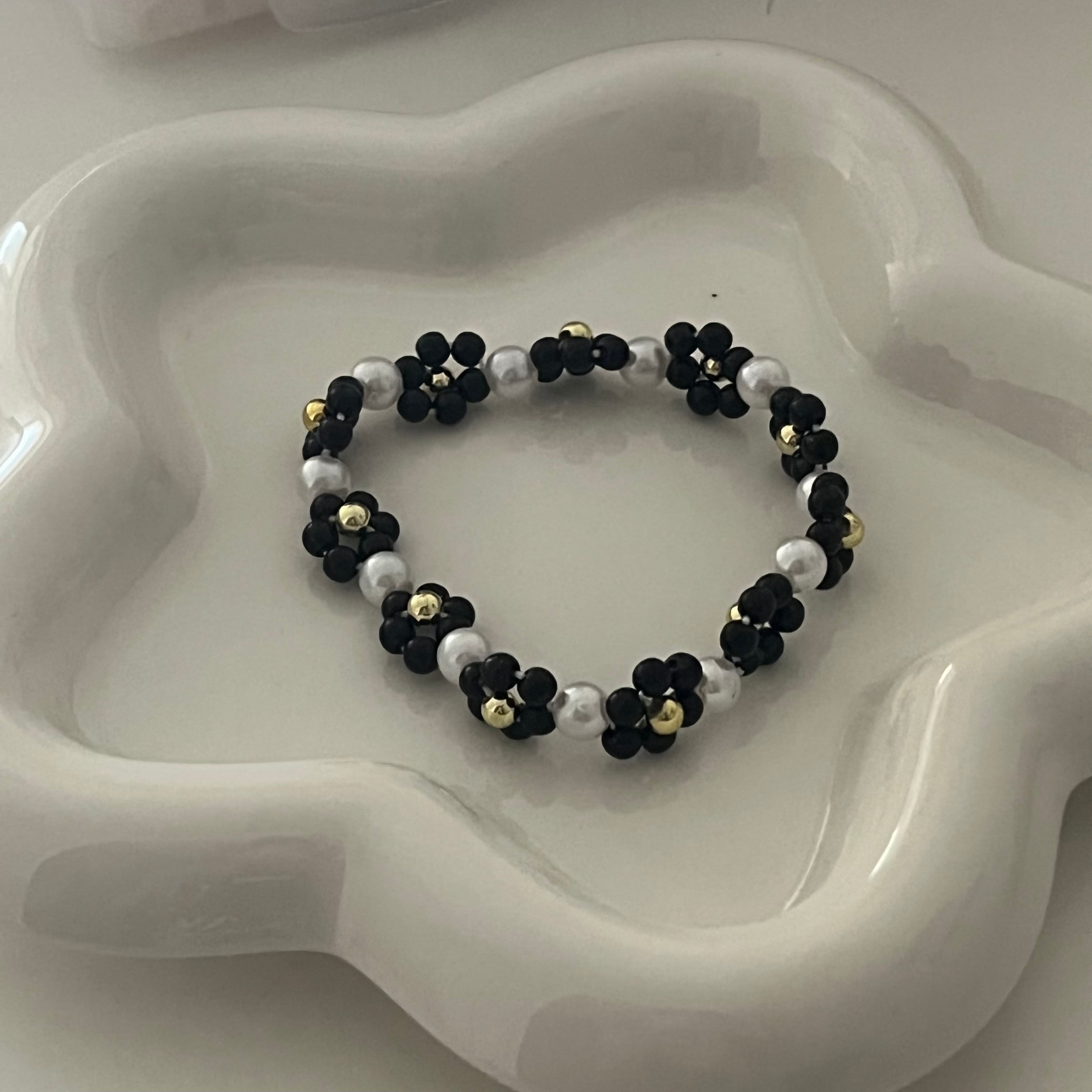 【black flower bracelet】ビーズブレスレット⭐︎韓国アクセサリー
