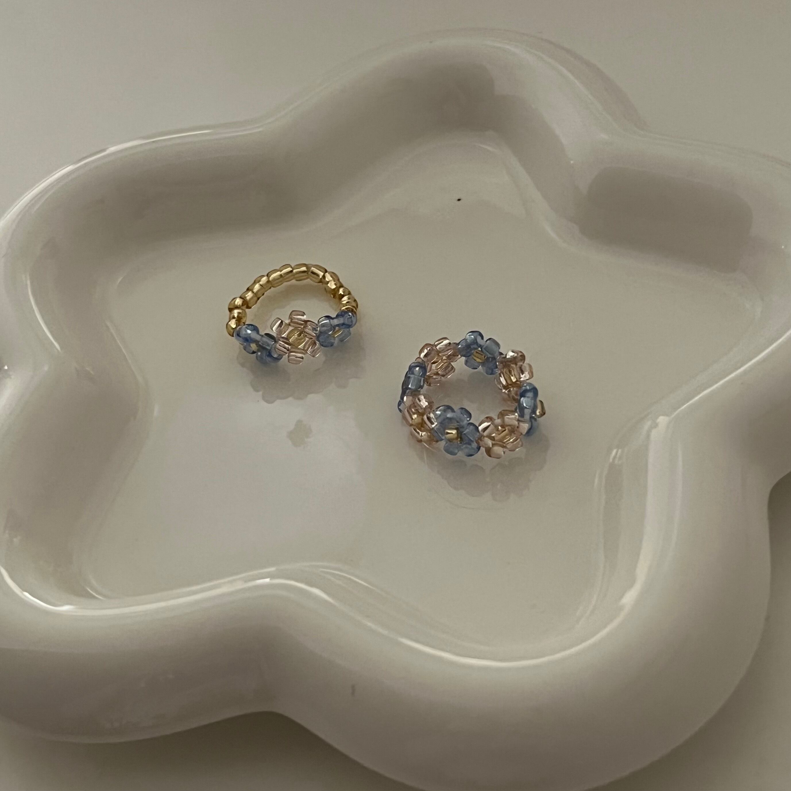 ⭐︎ブルー×ベージュのフラワーがシンプルでありながら大人っぽい存在感を放つビーズリング