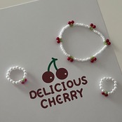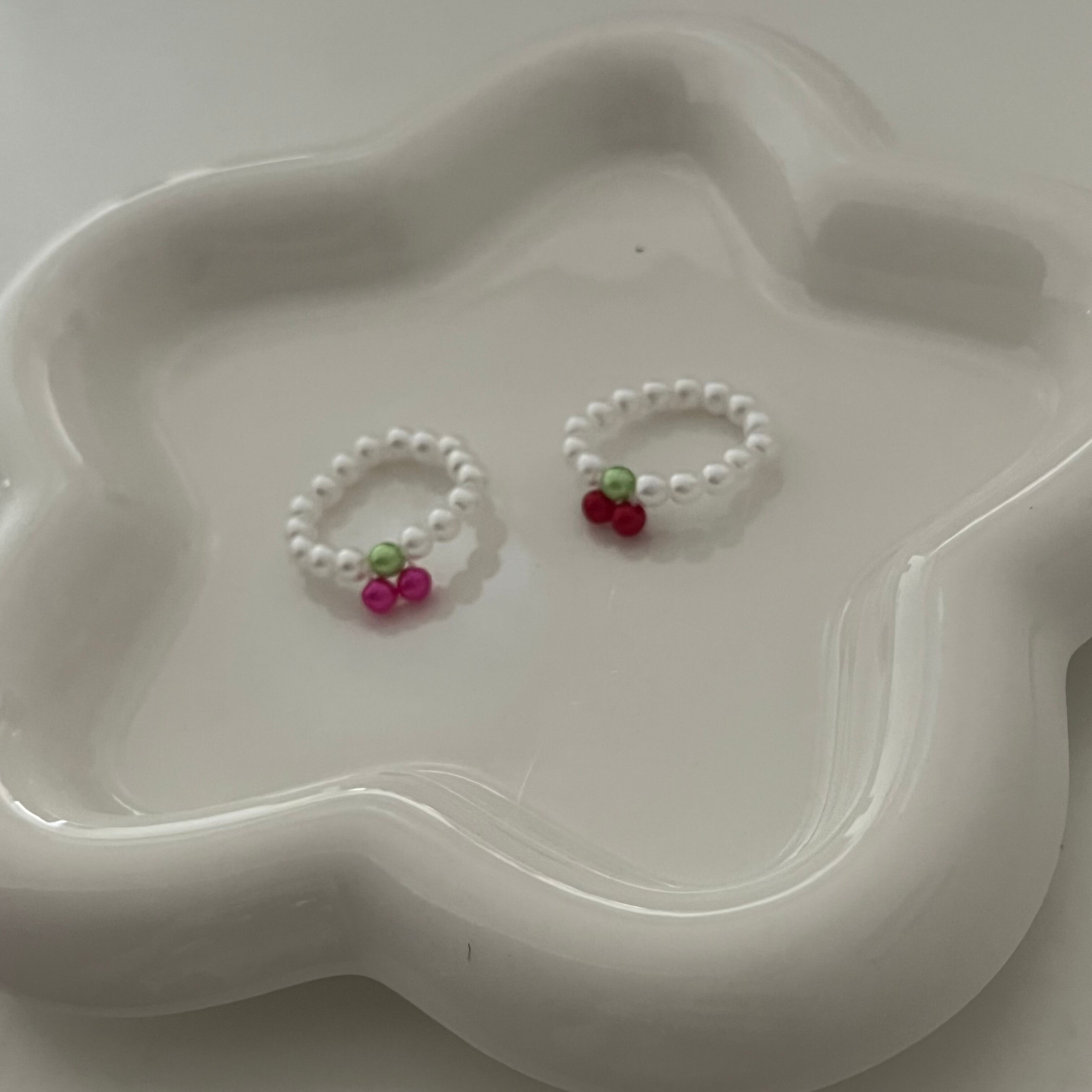 ⭐︎さくらんぼとホワイトの組み合わせが、韓国っぽさを演出し、可愛らしい雰囲気のビーズリング