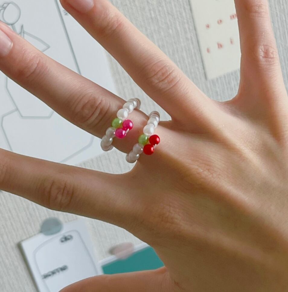 【cherry ring】ビーズリング⭐︎韓国アクセサリー