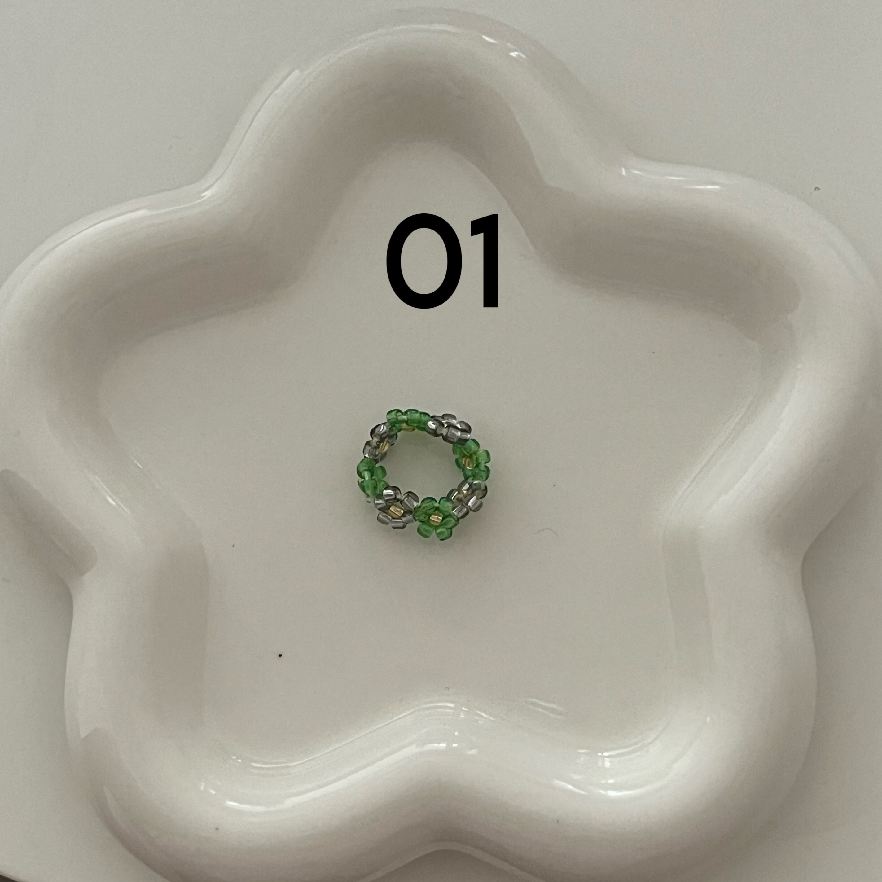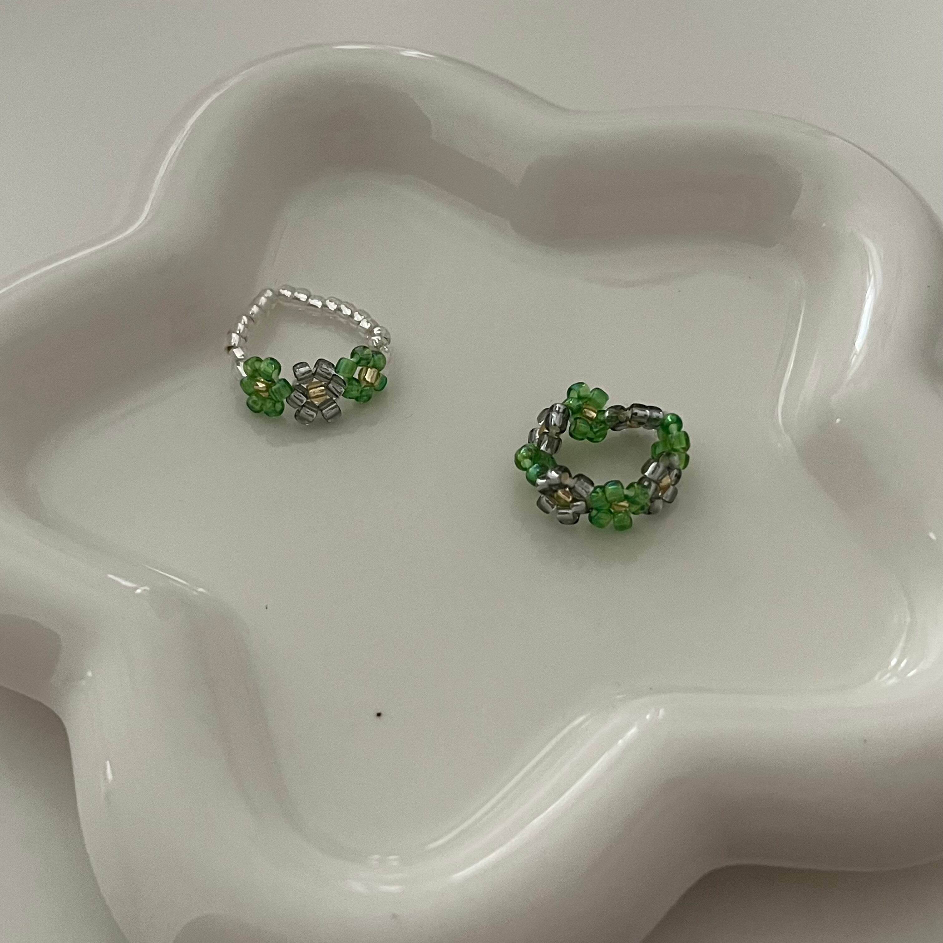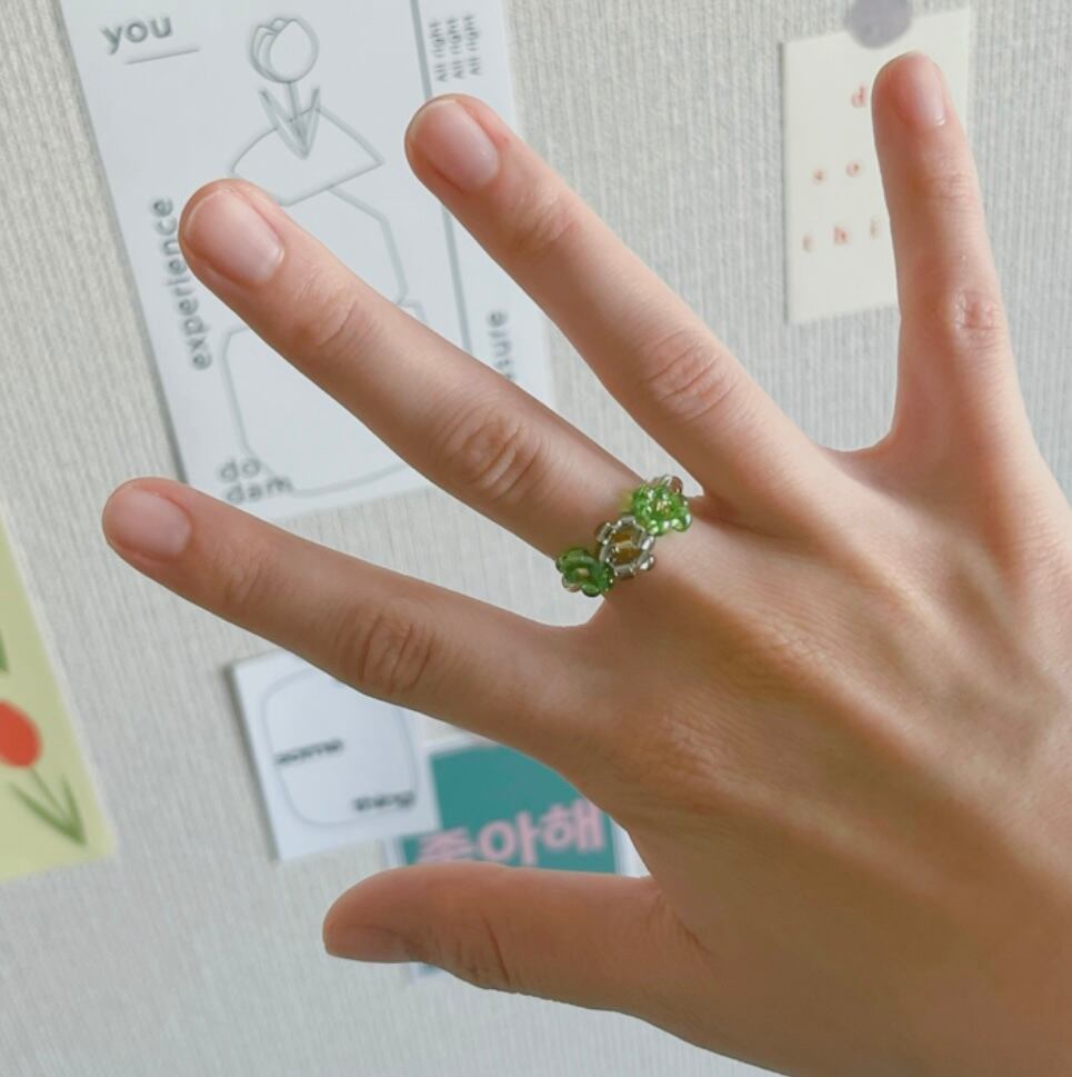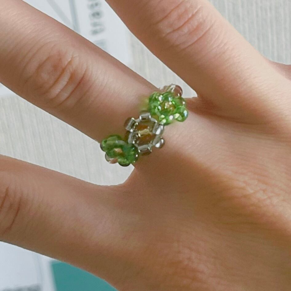 【green flower ring】ビーズリング⭐︎韓国アクセサリー