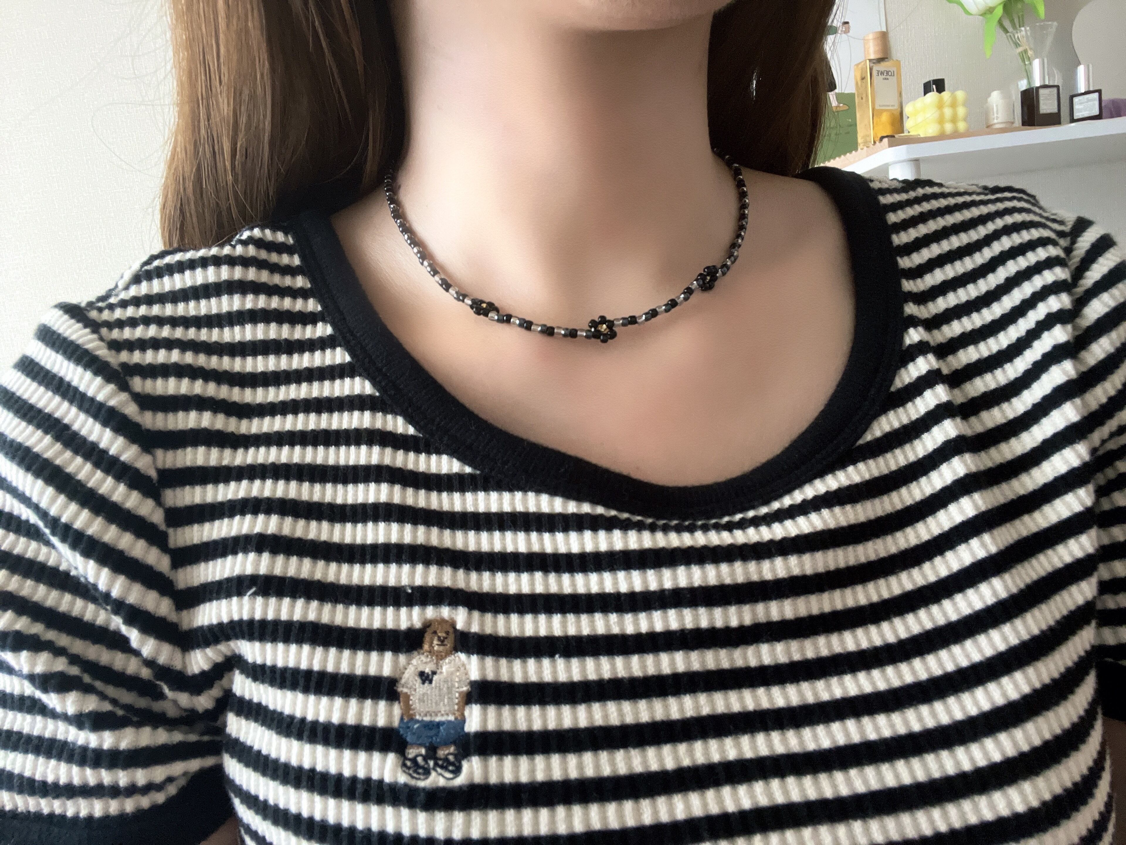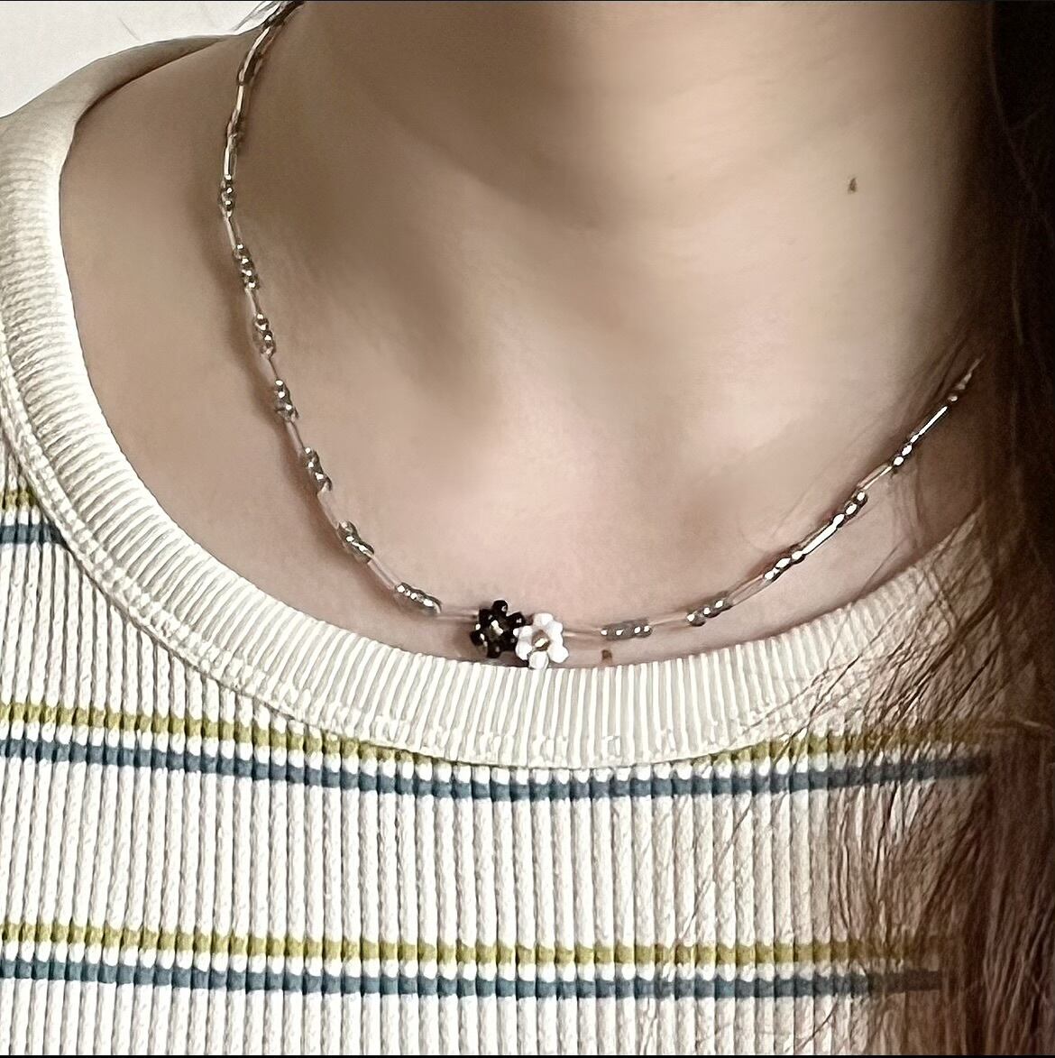 ⭐︎シンプルな配色とフラワーのワンポイントで韓国っぽさを出したネックレス