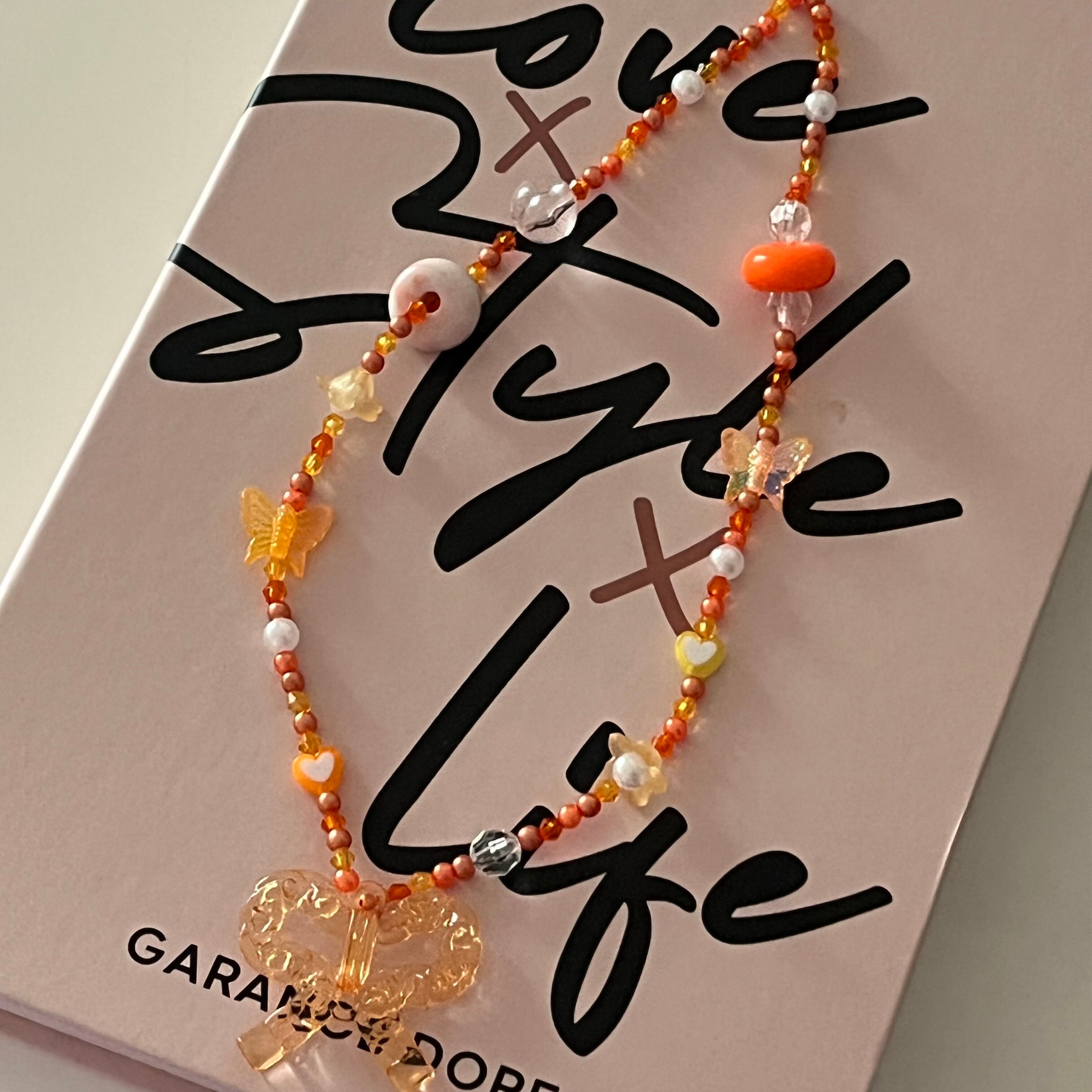 【orange ribbon necklace】ビーズネックレス⭐︎韓国アクセサリー