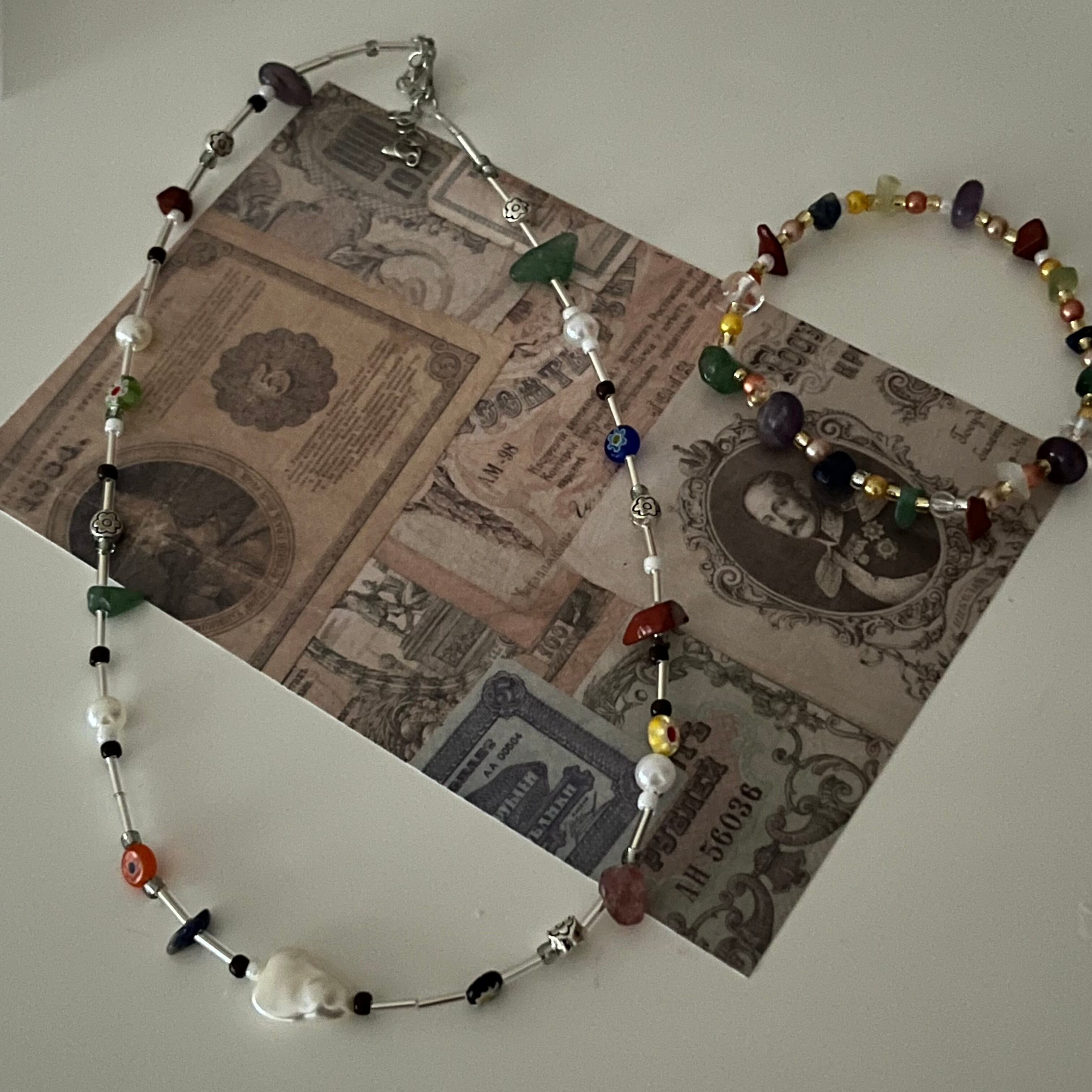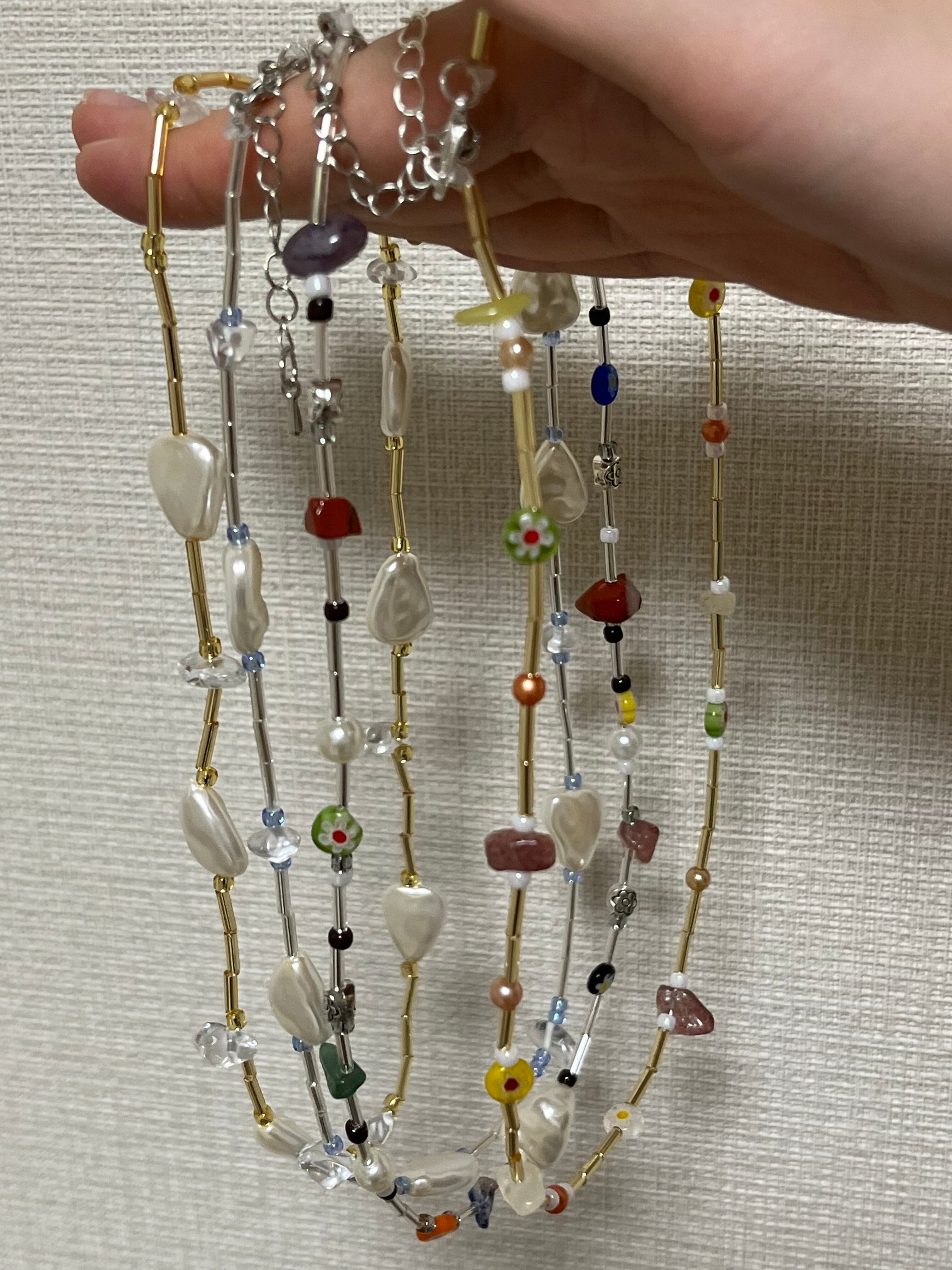 ⭐︎マルチカラーのストーンビーズを散りばめた個性的なネックレス