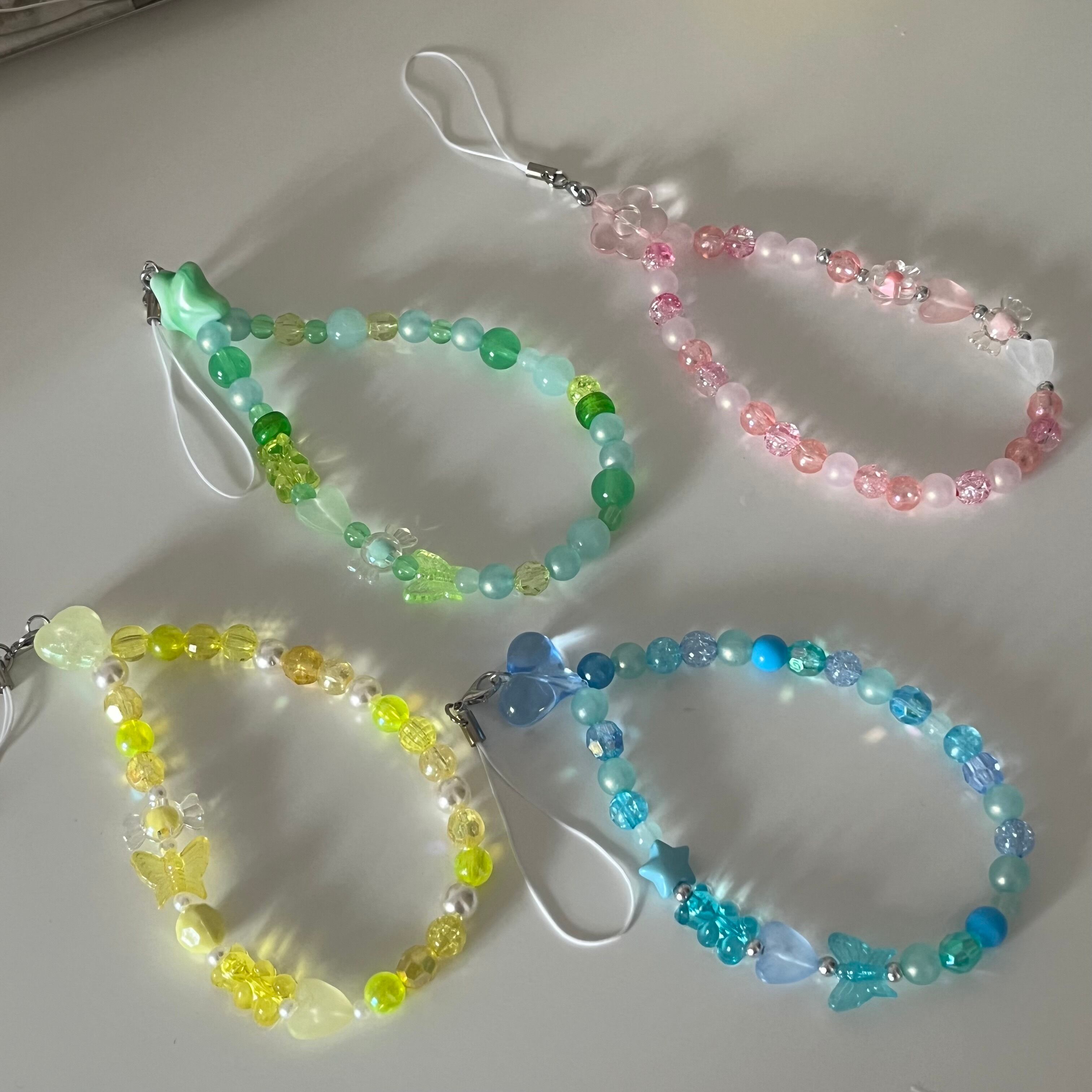 ⭐︎ハート、くま、キャンディなど様々な可愛らしいビーズを使用した全4種類のビーズストラップ