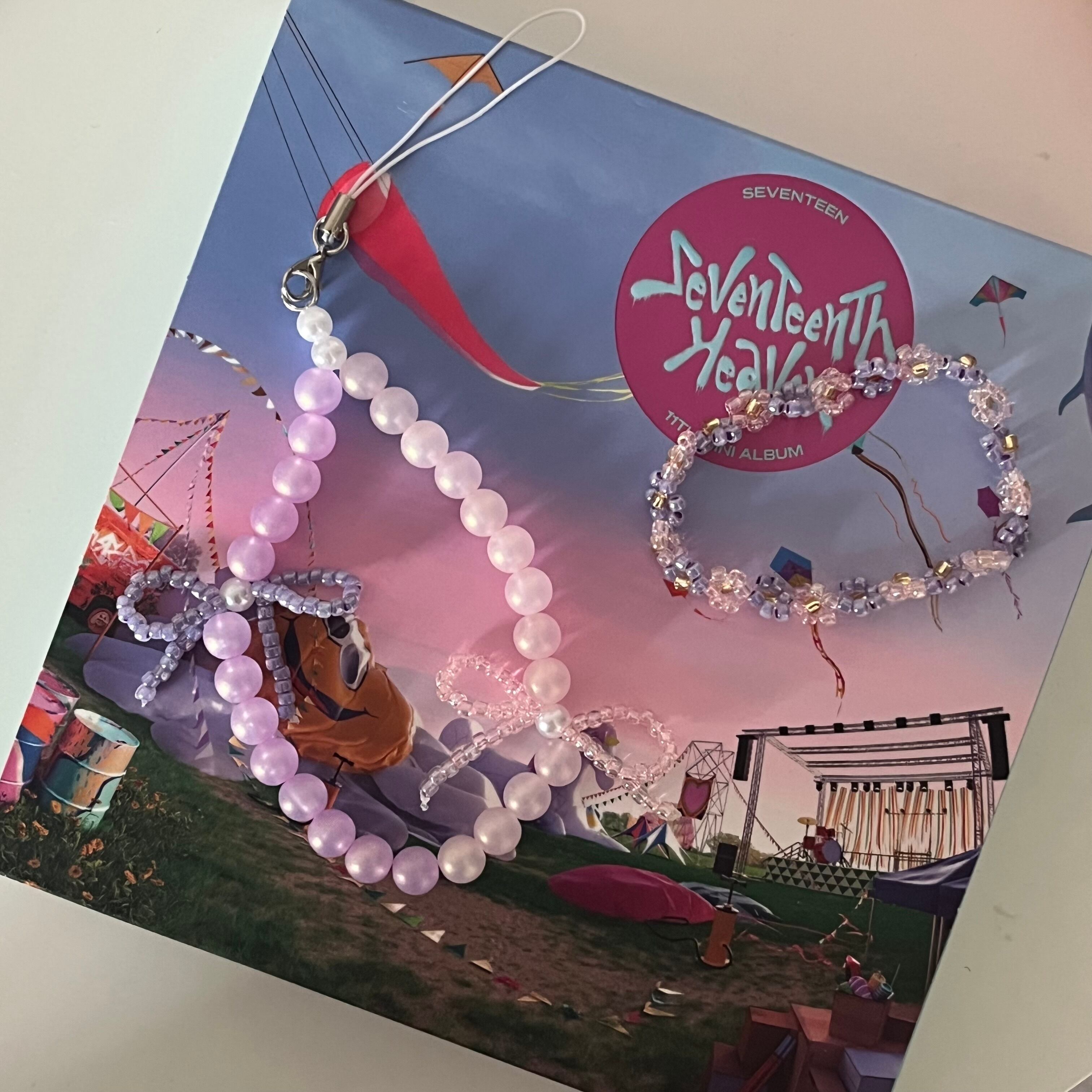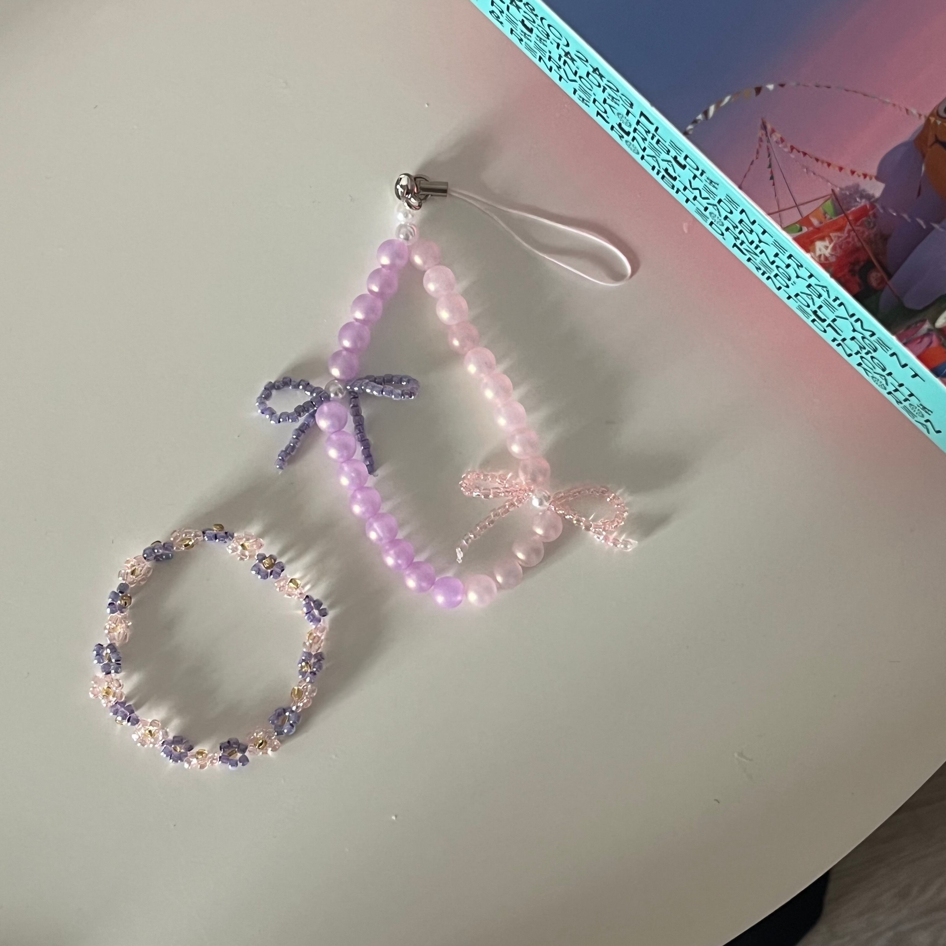 【purple×pink ribbon strap】ビーズストラップ⭐︎韓国アクセサリー